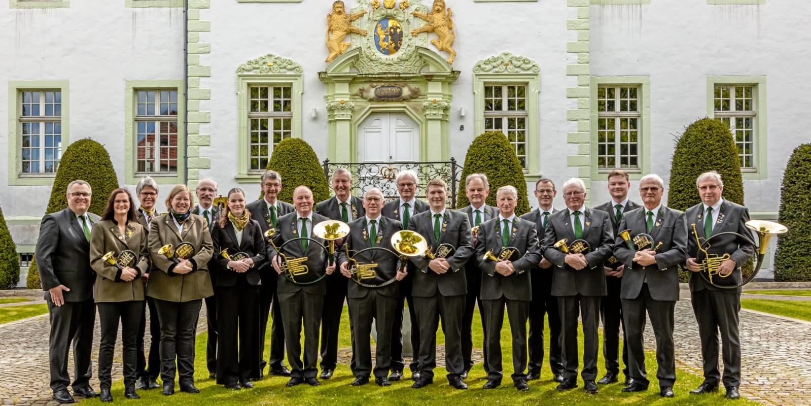 Zu Ehren des Heiligen Hubertus gestalten die Liesborner Jagdhornbläser unter der Leitung von Andreas Wolbracht den Gottesdienst mit eindrucksvollen Klängen der Parforce- und Fürst-Pless-Hörner.